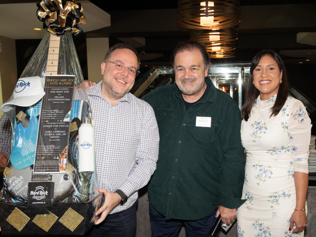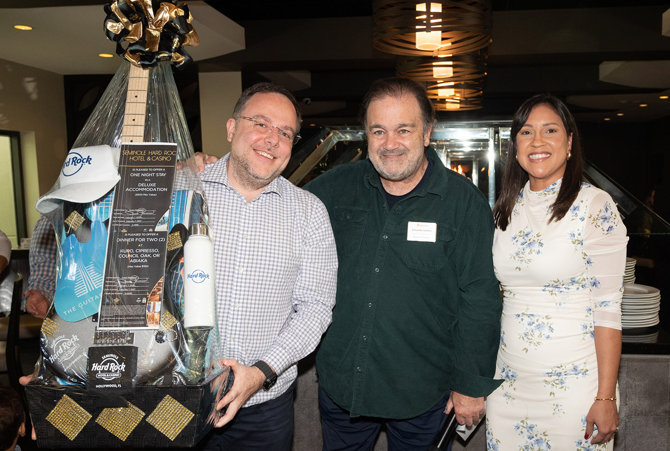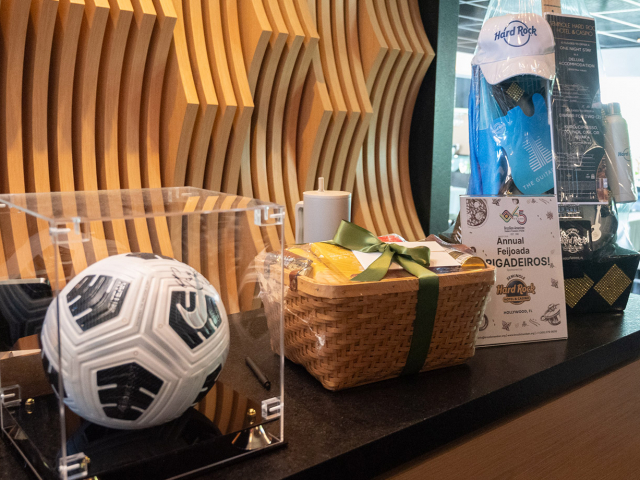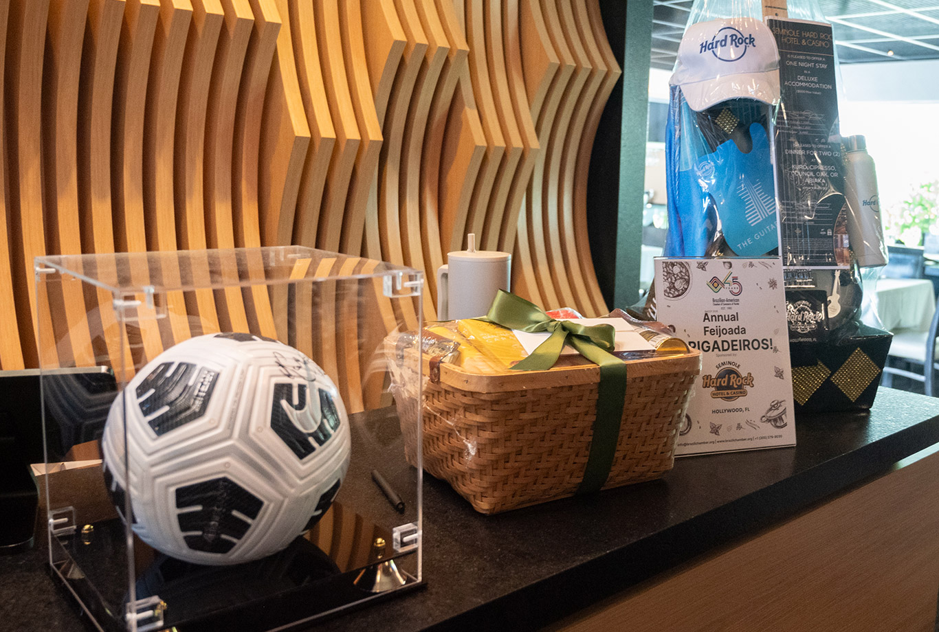 Marson Cunha, presidente reeleito para a gestão 2026, fez as honras da casa, apresentando a nova diretoria para o ano e confirmando os tradicionais Conselheiros da associação. Eduardo Santos, decano da BACCF, comandou um sorteio de brindes oferecidos pelos patrocinadores da Feijoada, onde a estrela foi o Seminole Hard Rock Hotel & Casino, mais recente associado, que ofereceu uma estadia no famoso hotel em formato de guitarra na cidade de Davie, perto de Miami, e ainda uma cesta de goodies com uma guitarra de verdade incluída.