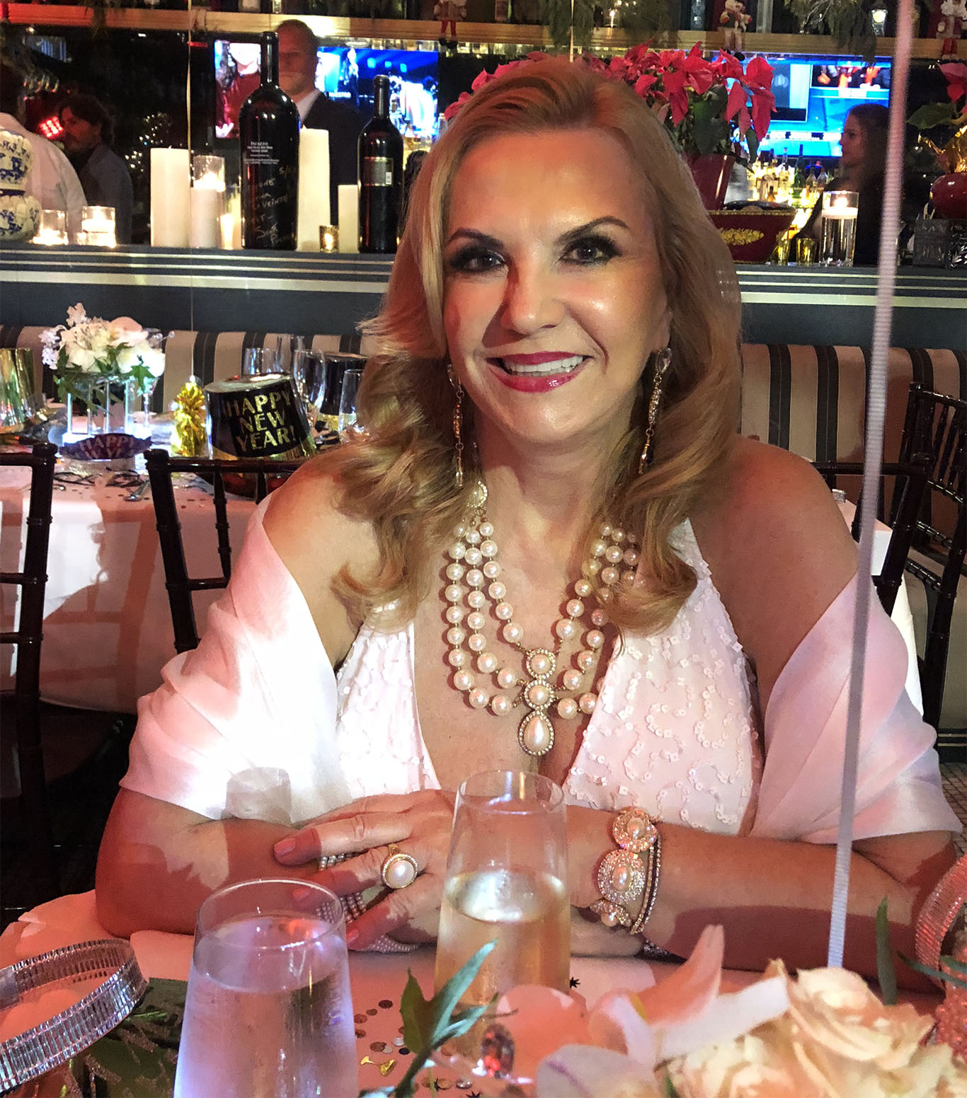 Passei este Réveillon na minha cidade do coração, Miami em alto estilo. Escolhi a festa mexicana do restaurante La Veinte, que fica aqui no meu condomínio de Miami. A decoração estava deslumbrante, como vocês podem ver nas fotos, o ambiente alegre com muitos mexicanos, só gente bonita e elegante, as mesas com lindos arranjos de rosas brancas e repletas de coisas para você completar seu traje típico: cartolas, tiaras, colares, apitos, cornetas,etc. O menu foi perfeito, começando pelos King Crabs do Alaska, o prato principal era uma lagosta do Maine que estava deliciosa, com manteiga de ervas e coentro e a sobremesa divina de chocolate. A champagne francesa Veuve Clicquot jorrou a noite inteira e os mariachis. Ah, os mariachis! Adoro mariachis e as lindas músicas típicas mexicanas, e a minha favorita é Las Mananitas, que é a música oficial que se toca e se canta como parabéns para quem está fazendo aniversário. Eu queria ouvi-la e então, quando os mariachis chegaram na nossa mesa, eu disse que era meu aniversário. Não disse qual era o dia, só disse a verdade, pois todo mundo faz aniversário todo ano, entenderam? Então, eles atacaram de Las Mananitas e eu comecei muito bem meu ano. Espero que meus queridos leitores tenham tido também um excelente Reveillon e desejo um maravilhoso Ano Novo para todos nós!