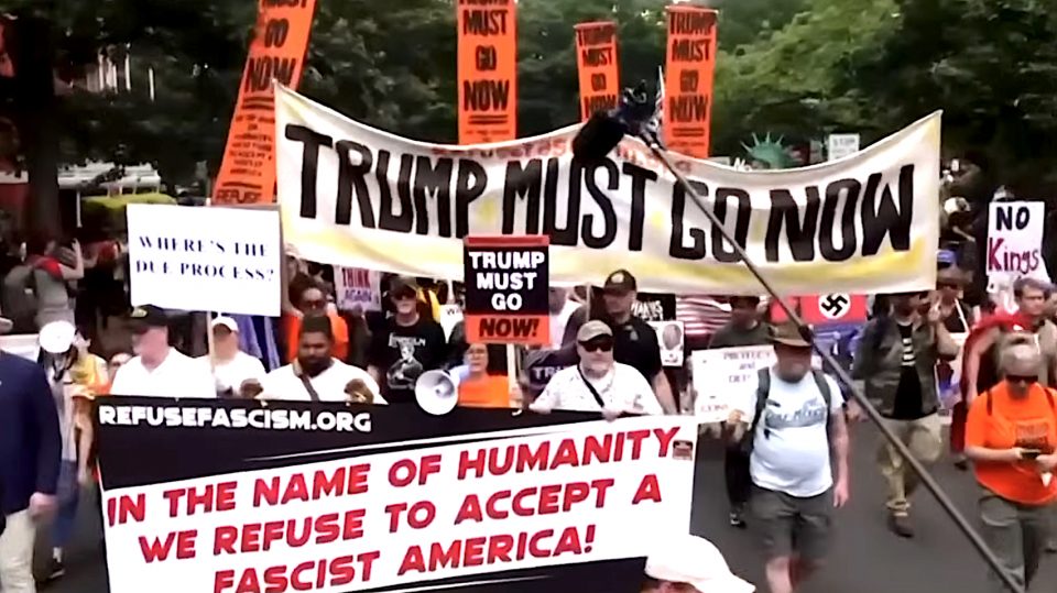 Movimento “No Kings” chega à terceira edição e mobiliza cidades do sul da Flórida contra políticas do governo atual. Foto: Reprodução TV